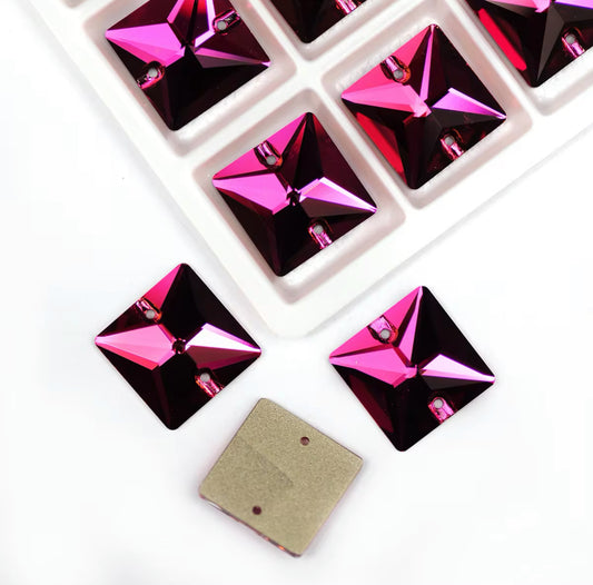 16mm - AAA+ 3240 Square Crystal Flatback Sew On - Fuchsia